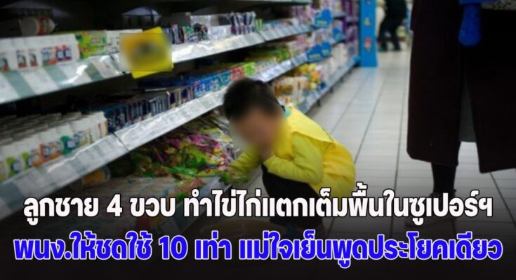 นี่คือความผิดของเขาและของฉันที่ไม่ได้ดูแลลูกให้ดี เราควรจะชดเชยอยู่แล้ว แต่ซูเปอร์มาร์เก็ตไม่มีระเบียบที่ชัดเจนว่าเสียหายต้องชดเชย 10 เท่า ข้อเรียกร้องของคุณไม่สมเหตุสมผล ฉันไม่สามารถตกลงได้ จากคำพูกนั้น พนักงานซุปฯถึงกับพูดไม่ออก และในที่สุดก็ต้องยอมให้เธอชดเชยไข่ที่แตกตามราคาปกติ