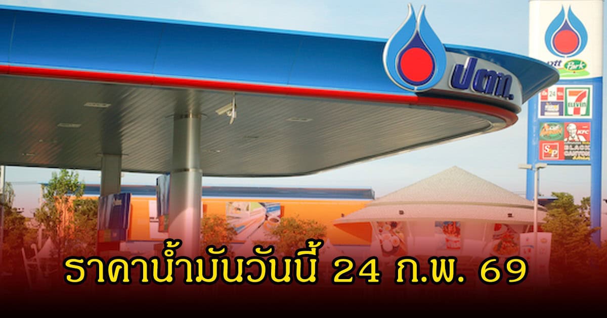 ราคาน้ำมันวันนี้ 24 ก.พ. 69 ราคาน้ำมันล่าสุด ราคาน้ำมันเบนซิน แก๊สโซฮอล์ ราคาน้ำมันดีเซล ราคาน้ำมันทุกชนิด จาก ปั๊มน้ำมัน ปตท. , บางจาก , เชลล์ (Shell) และ PT มีดังนี้