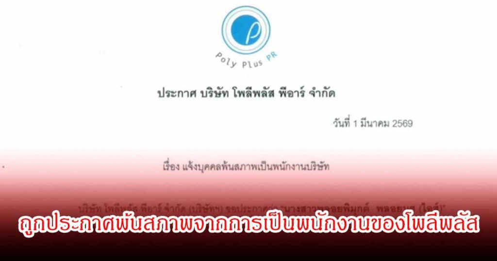 เกิดอะไรขึ้น! ไอส์เพื่อนเกล ถูกประกาศพ้นสภาพจากการเป็นพนักงานของ บริษัท โพลีพลัส